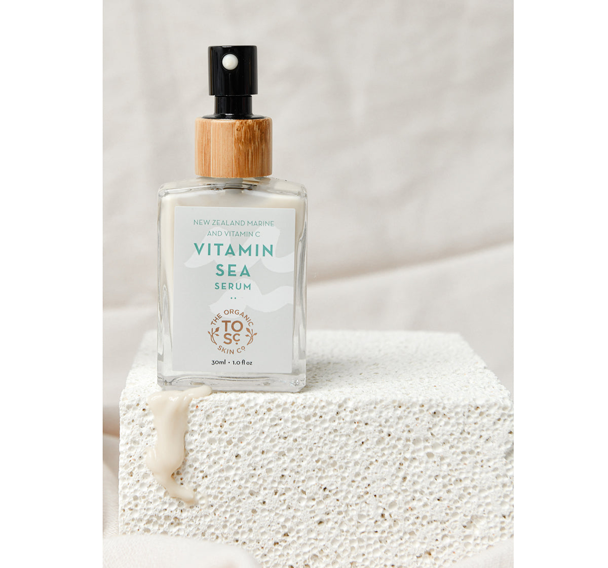 — Collagen builder | helps boost elasticity | helps improve general health and appearance of skin | vitamin C, New Zealand native red seaweed, jojoba seed oil, amla berry